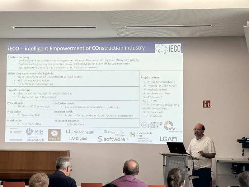 02.10.2023Mitte September 2023 fand das dritte Treffen der iECO-Konsortialpartner in Dresden statt. iECO steht für Intelligent Empowerment of Construction Industry und ist ein vom Bundeswirtschaftsministerium gefördertes Leuchtturmprojekt, das sich mit der Entwicklung eines Datenraums für die Baubranche und der Implementierung von Advanced Smart Services im Rahmen der Gaia-X-Infrastruktur beschäftigt. Das Vorhaben hat bedeutende Fortschritte erzielt und wichtige Meilensteine erreicht.