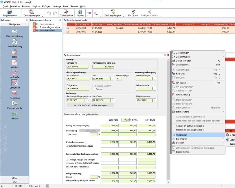 Gemeinsam mit dem Partner crossinx bietet BRZ einen Rundum-Service inklusive Versand aller Rechnungsformate, der in die bestehende BRZ-Bausoftware integriert wurde. Dabei ist gewährleistet, dass die E-Rechnungen an öffentliche und private Auftraggeber im jeweils gewünschten Format – beispielsweise XRechnung oder ZUGFeRD, inklusive aller branchenspezifischer Anlagen – versandt werden. Begleitende optionale Online-Schulungen und Beratung unterstützen die Verantwortlichen in den Bauunternehmen bei der Umstellung.