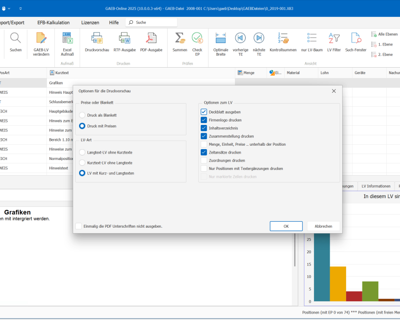 Mit neuen Druckoptionen lassen sich nun gezielt Teilbereiche oder spezifische Gliederungen eines Leistungsverzeichnisses auswählen, ausdrucken und individueller, bspw. im Corporate Design, gestalten. Zudem können Nutzer individuelle Kopf- und Fußzeilen sowie einheitliche Schriftarten festlegen. Das soll eine konsistente und hochwertige Gestaltung von Angebotsdokumenten ermöglichen. Der Entwickler hat darüber hinaus den Excel-Export in der neuen Version des Bieterprogramms verbessert, um Anwendern mehr Flexibilität und Effizienz zu bieten. Zu den neuen Funktionen zählt ein selektiver Export, der die Auswahl spezifischer Bereiche oder Positionen eines Leistungsverzeichnisses ermöglicht. Die exportierten Excel-Dateien sind zudem mit verbesserten Formeln und optionalem Zellschutz ausgestattet. Eine gruppierte Ausgabe ermöglicht eine bessere Übersicht über Positionen und Spalten.