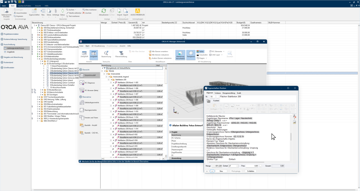 Mit dem aktuellen Update hat die Orca Software GmbH einen weiteren Meilenstein in puncto BIM, Datenaustausch und Usability erreicht. Die neue Version „Orca AVA 25“ transferiert die durchgängige Digitalisierung im Planungsprozess auf die nächsthöhere Ebene. Mit ihr können Planer und Architekten nach Angaben des Anbieters schnell und bequem im Modell suchen, filtern, IFC-Mengen aktualisieren und auch komplexe BIM-Modelle übersichtlich anzeigen lassen. Ein weiteres Plus: Wie bei den anderen Übernahme-Sichten werden nun auch in der Sicht ‚Bauteile - CAD-Maße‘ alle verfügbaren Maße direkt in der Baumstruktur angezeigt und übersichtlich nach Längen, Flächen, Volumen und Gewichten gruppiert und zur Übernahme angeboten.