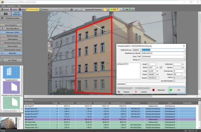 Für die optimale Problemlösung bei diesen Aufgabenstellungen hat das Baukosteninformationszentrum Deutscher Architektenkammern BKI jetzt das neue Programm „BKI Fotoaufmaß – Version 12“ mit 3D-Funktion sowie DXF- und Excel-Export entwickelt. Auf Basis eines fotografierten Gebäudes und mit nur einem Referenzmaß kann damit schnell und einfach die Vermessung eines Gebäudes durchgeführt werden.