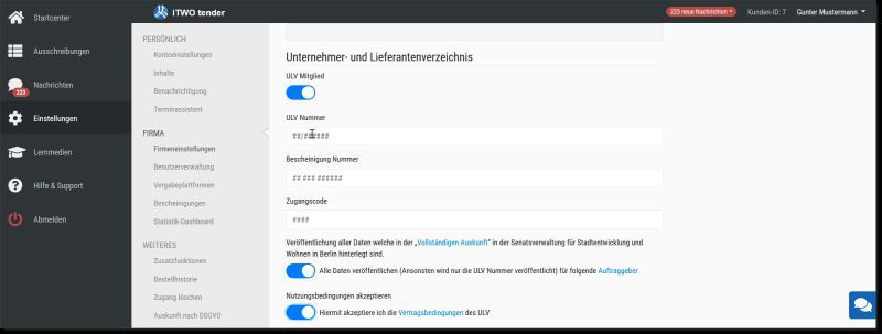 "e-Vergabe public" um ULV-Schnittstelle erweitert 04.01.2021Das Land Berlin gehört neben Bayern und Schleswig-Holstein zu den Bundesländern, die die elektronische Vergabeplattform "iTWO e-Vergabe public" bereits seit vielen Jahren landesweit und sehr erfolgreich für ihre öffentlichen Aufträge bei Bau-, Liefer- und Dienstleistungen durchgängig einsetzen. Mit einer Schnittstelle zum Amtlichen Unternehmer- und Lieferantenverzeichnis (ULV) konnten nun die Prozesse für alle Mitarbeiter in den Vergabestellen des Landes erneut vereinfacht werden.